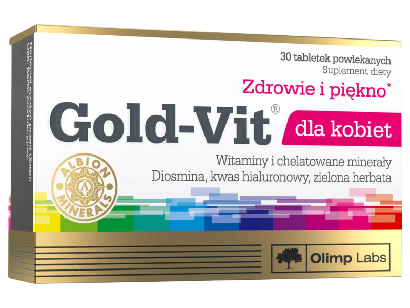 Olimp Gold-Vit dla kobiet to preparat zawierający nie tylko standardowy zestaw witamin i minerałów, ale również substancje dodatkowe wspierające zdrowie kobiet.