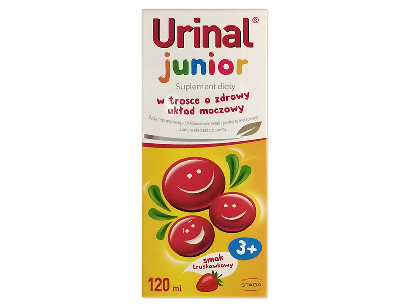 Urinal Junior zawiera dodatkowo liść brzozy i D-mannozę, nie ma laktozy i posiada smak truskawkowy, co ułatwia podawanie dzieciom od 3. roku życia.