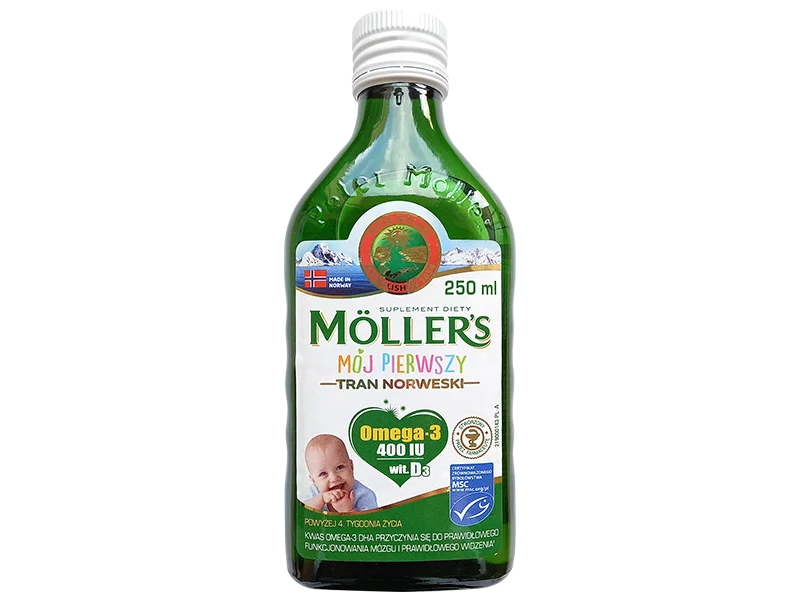 Möller’s Mój Pierwszy Tran Norweski to płyn, który można podawać niemowlętom i małym dzieciom. Tran norweski jest tradycyjnym źródłem omega-3 oraz witaminy D.